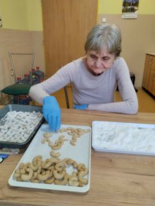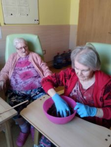 Tvoření je pro nás radostí a velmi nás těší. V těchto měsících využíváme bohatství podzimní přírody, která nám nabízí nádherné poklady – prázdné makovice, žaludy, kaštany a listy v neuvěřitelných odstínech podzimu. Tyto přírodní dary se stávají součástí našich výrobků, které slouží nejen k ozdobení pokojů našich uživatelů, ale i ke zkrášlení domova. Tvorba pro nás není jen zábavou, ale i příležitostí ke společnému sdílení, vzájemné inspiraci a procvičování jemné motoriky. Kromě toho trénujeme paměť a prohlubujeme vzájemné vztahy, což vše obohacuje naši práci a vzájemné soužití.
