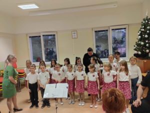 Dne 10. 6. 2025 dopoledne navštívily naše uživatele služby domov se zvláštním režimem děti z Mateřské školy Slezská v Třinci. Děti si připravily program se zpěvem a tancem v doprovodu paní učitelky, která jim hrála na klávesy. V závěru rozdaly každému papírovou kytičku, kterou samy ve školce vyrobily. Odměnou byla pro děti nejen malá sladkost a džus, ale také velký potlesk, radost a úsměvy na tvářích našich seniorů.