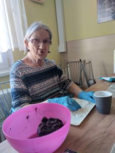 Tvoření je pro nás radostí a velmi nás těší. V těchto měsících využíváme bohatství podzimní přírody, která nám nabízí nádherné poklady – prázdné makovice, žaludy, kaštany a listy v neuvěřitelných odstínech podzimu. Tyto přírodní dary se stávají součástí našich výrobků, které slouží nejen k ozdobení pokojů našich uživatelů, ale i ke zkrášlení domova. Tvorba pro nás není jen zábavou, ale i příležitostí ke společnému sdílení, vzájemné inspiraci a procvičování jemné motoriky. Kromě toho trénujeme paměť a prohlubujeme vzájemné vztahy, což vše obohacuje naši práci a vzájemné soužití.